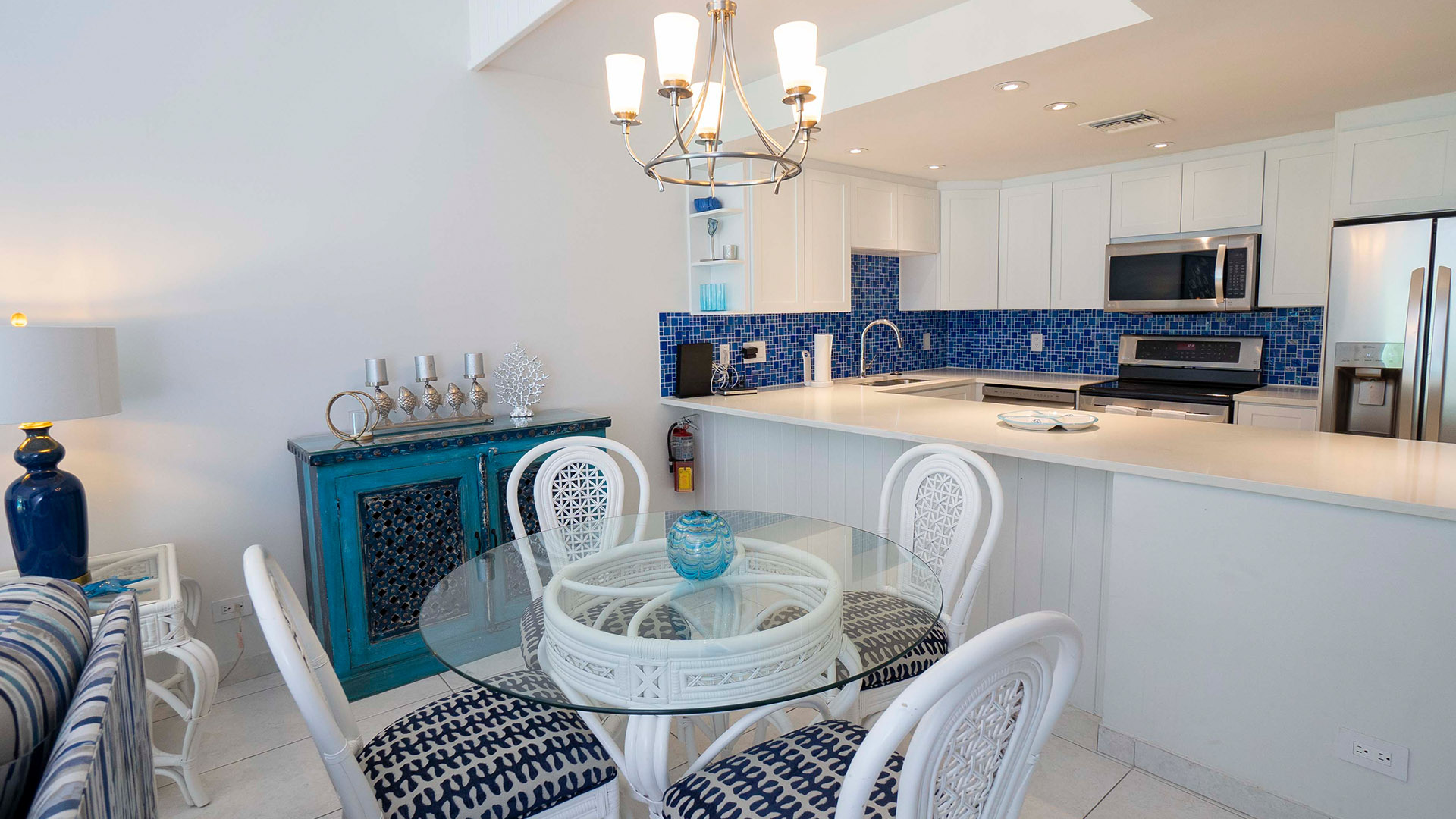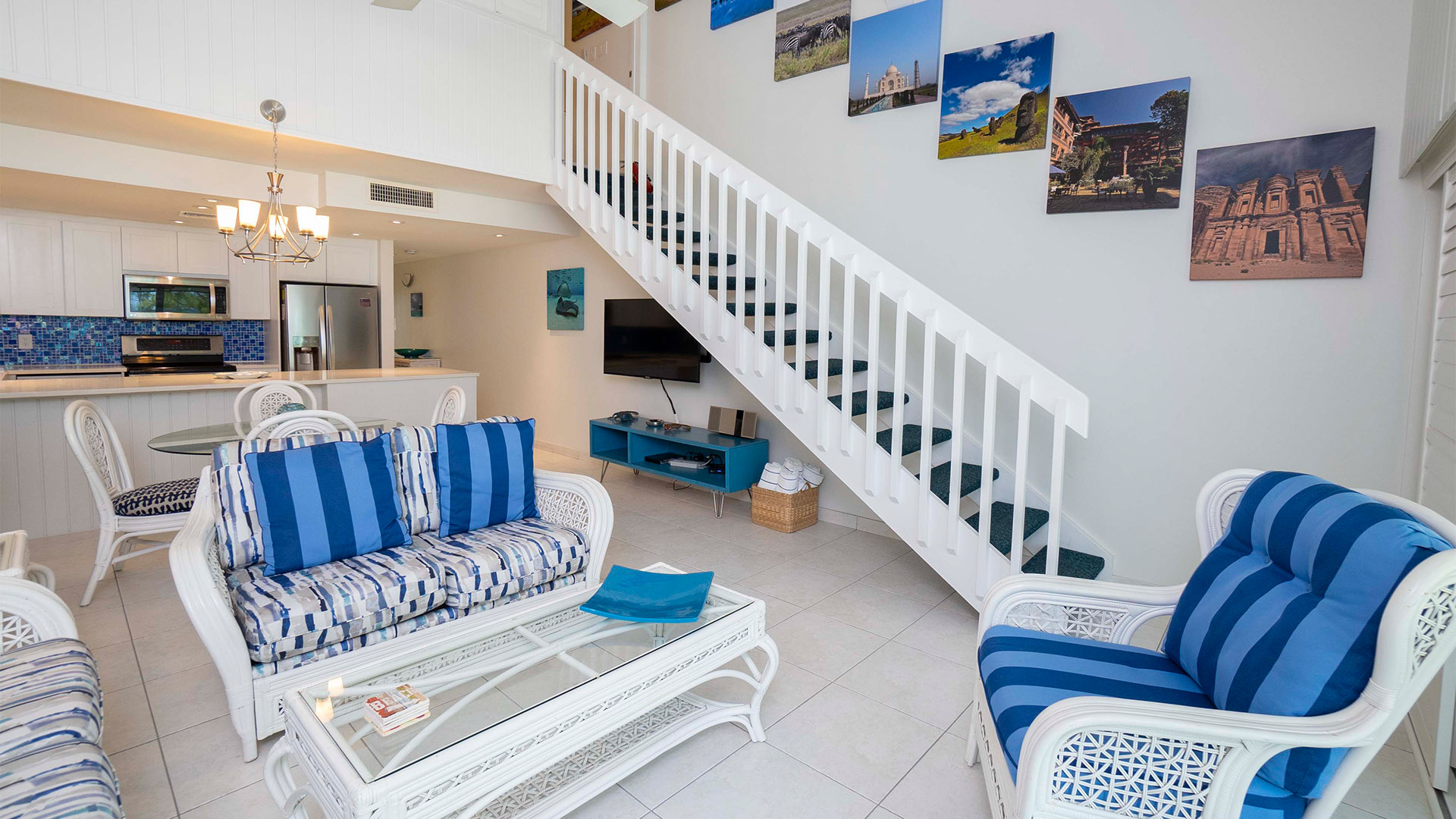 With 1,173 square feet of space, this recently renovated top-floor oceanfront villa offers breathtaking views of Seven Mile Beach framed by mature Casuarina trees lining the shoreline.