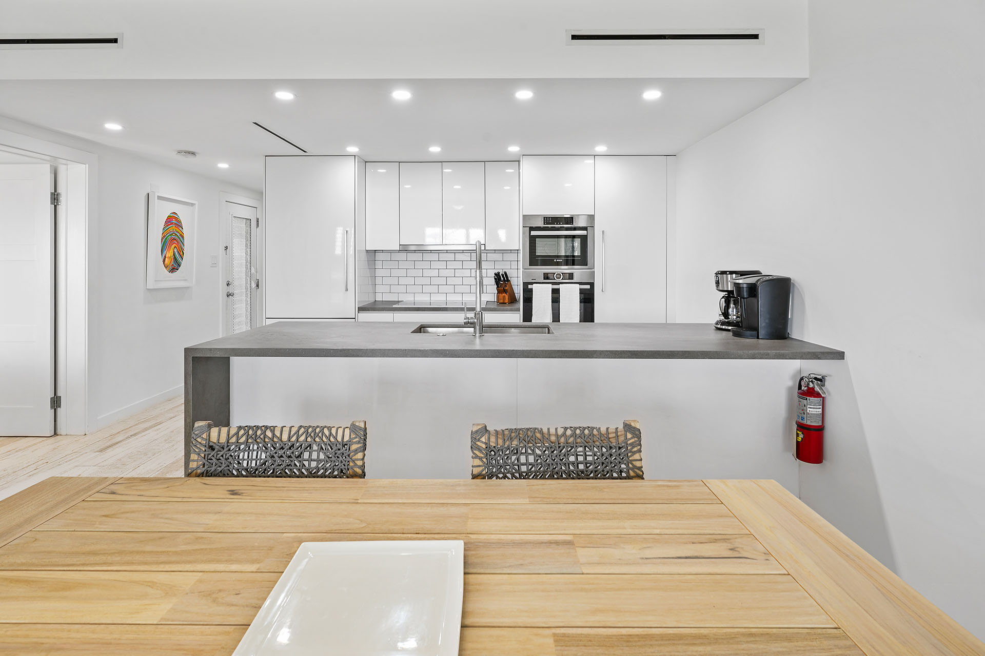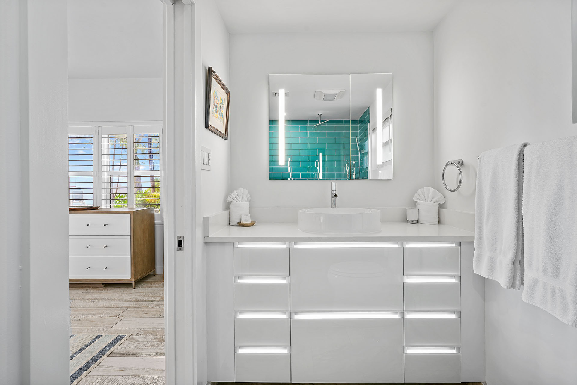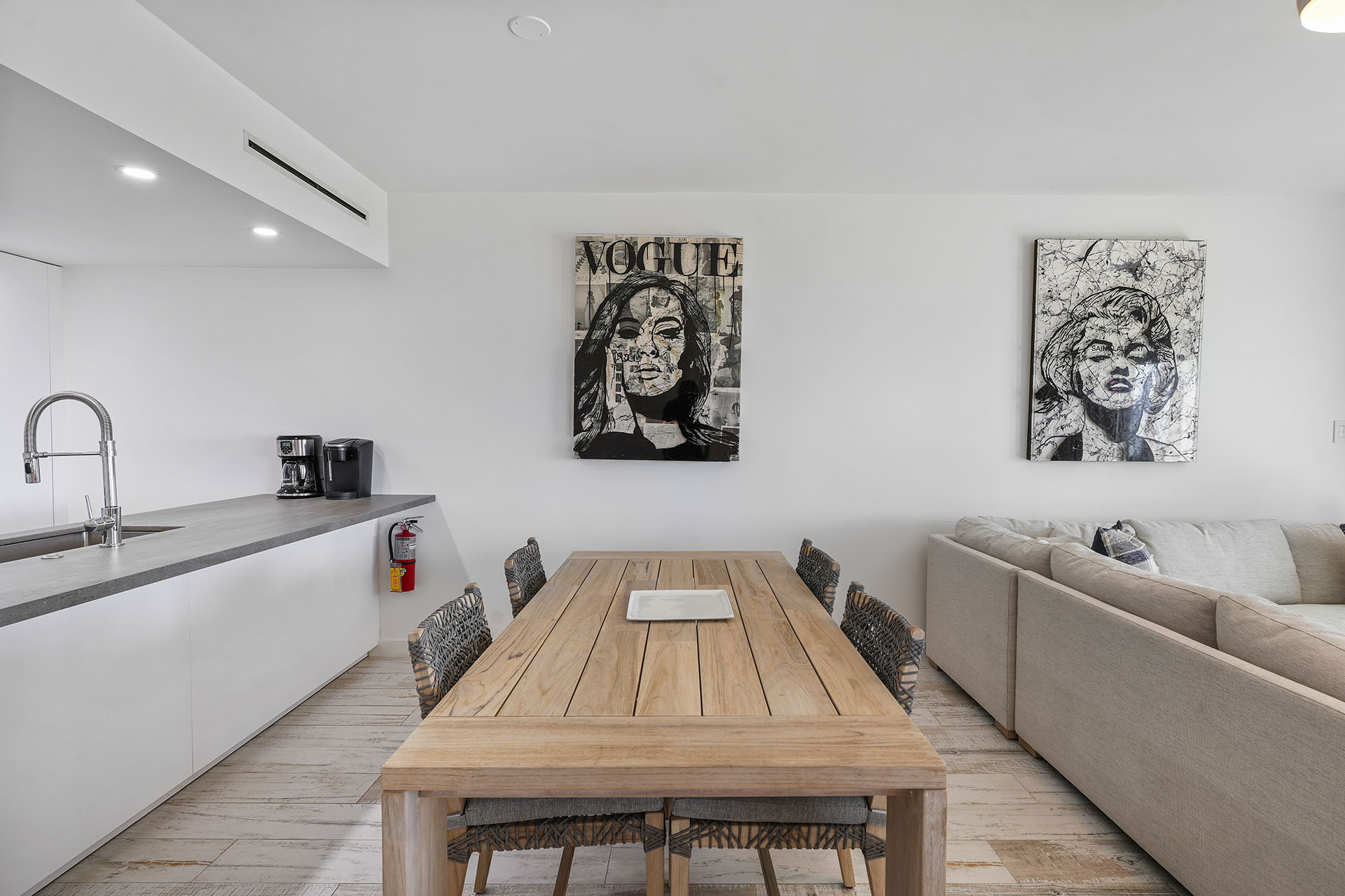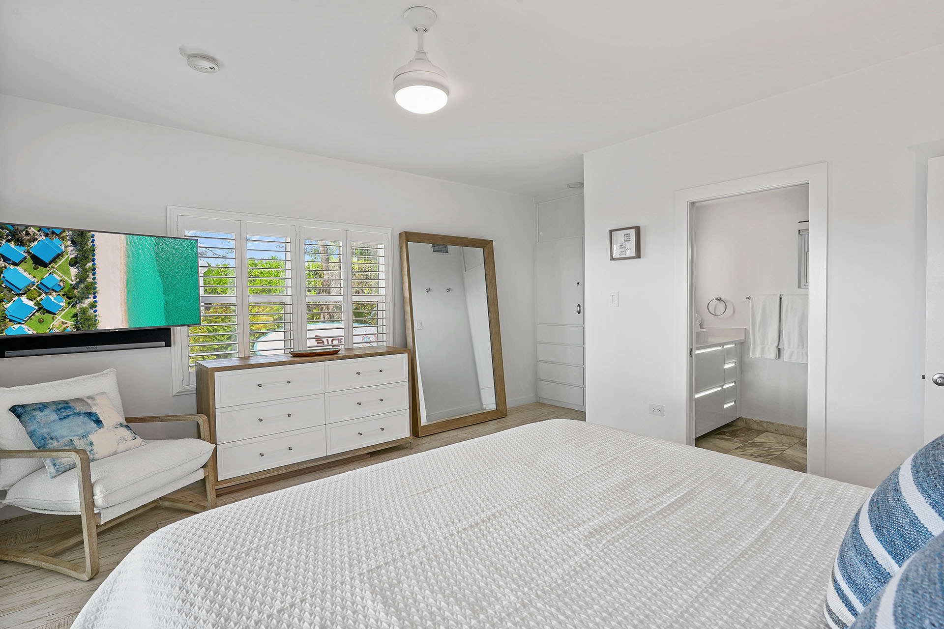 For your convenience, Villa 72 includes complimentary Wi-Fi, A/C, modern flat-screen TVs in every room, fresh linens in each bedroom, SONOS speakers, and an in-unit washer and dryer—ensuring a comfortable and connected stay.